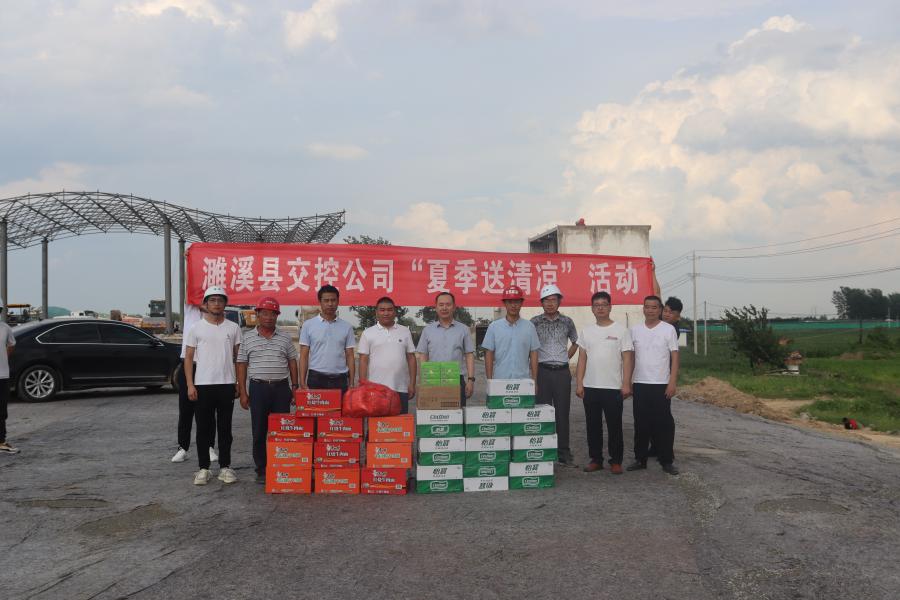 7月10日下午,支部书记、董事长许小松、总经理王旭、工会主席刘璐一行,亲临G3京台高速双堆集出口项目施工现场,为高温期间仍奋战在一线的工人送上矿泉水、清凉油等物品,以感谢他们的坚守与付出。